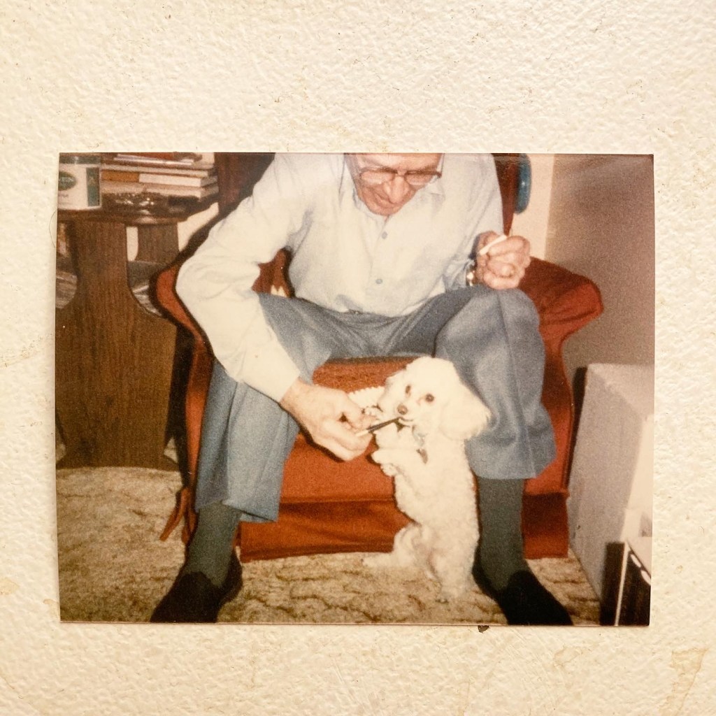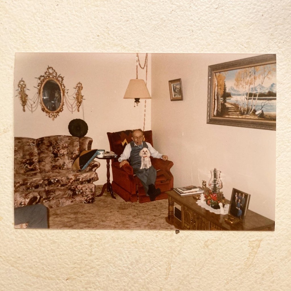 He also loved his stupid damn poodle, Benji. They were inseparable, Benji always on his lap as grandpa sat in his lounge chair (no one else allowed to sit there), whispering to the dog playfully in his thick Polish accent. Grandpa was born in Canada but everybody in that part of Saskatchewan was Slavic so the accent stuck. He would feed the dog cheese, and it loved him back to the point that it hated all other humans. Try to hug grandpa or even approach him and that damn dog would go into murder mode, barking and snapping at you. I love dogs but that damn dog sucked.