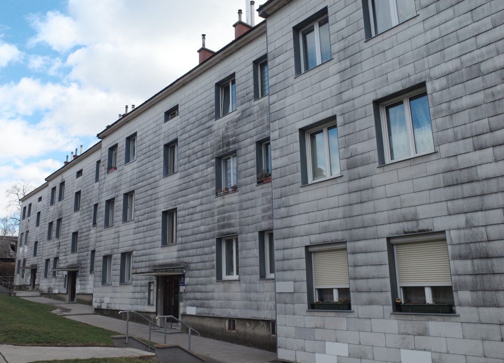 Is it a Soviet-era home for political prisoners? A haunted insane asylum? Kafka would look at this Kafkaesque nightmare and say, “That’s a bit much, don’t you think?” All those characters in period films that cough violently into a handkerchief, leaving spots of blood? They live here. This building was designed to extinguish all hope, and just looking at this photo has decreased your life expectancy by 6 months. The vermillion window trim is like lipstick on a zombie. Adorbs.